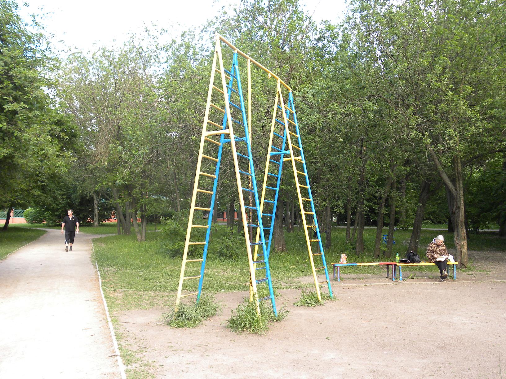 1 длинная кольцеобразная горизонтальная лесенка (примерно на 2-метровой высоте от земли);