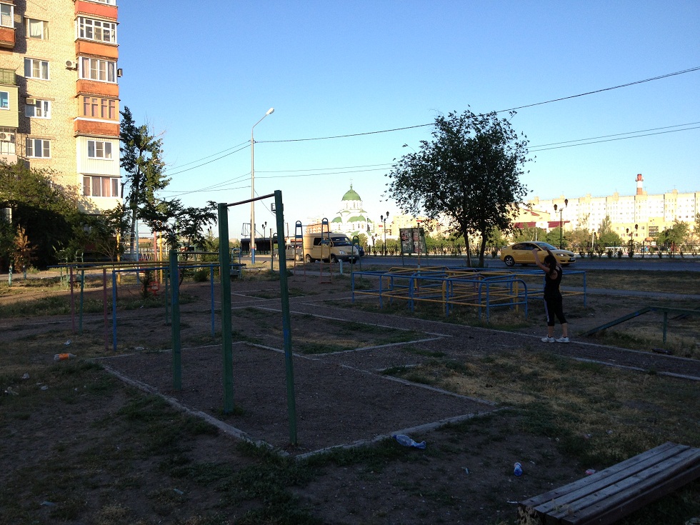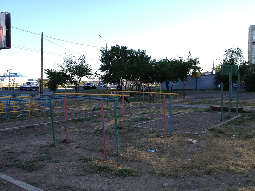 Площадка достаточно приличная, железо старое, людей немного.
