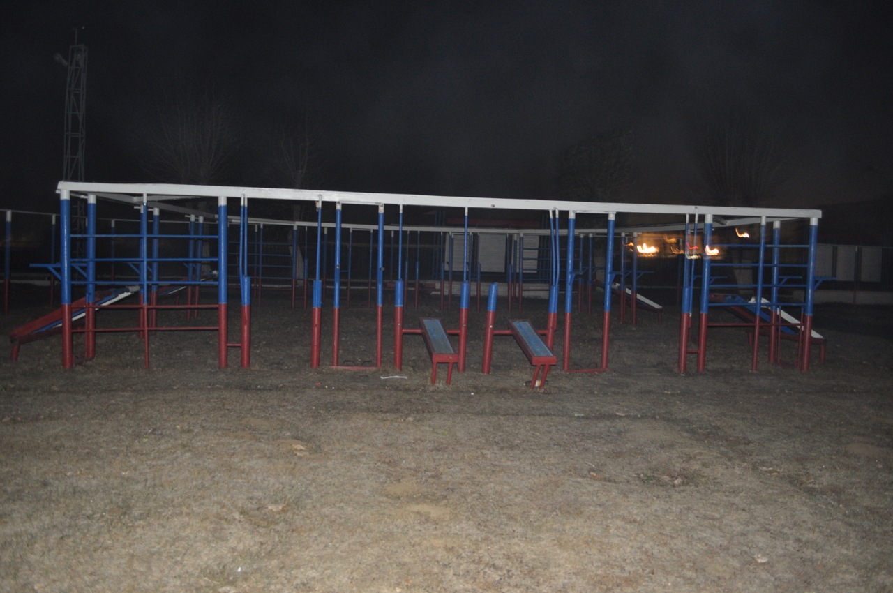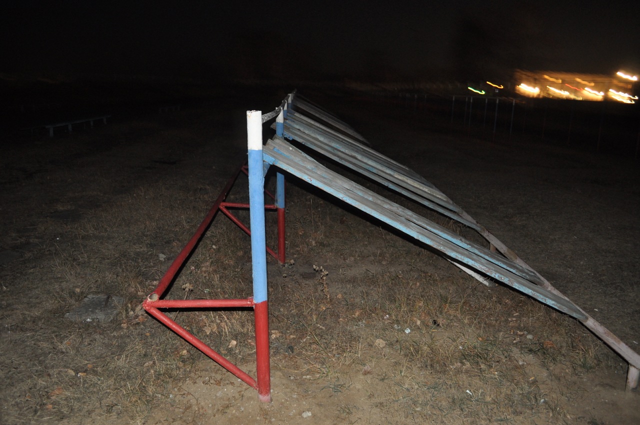Площадка рядом с военной частью. На территории огромное разнообразие спортивных снарядов. Пожалуй, это самая большая и самая качественная площадка в городе.