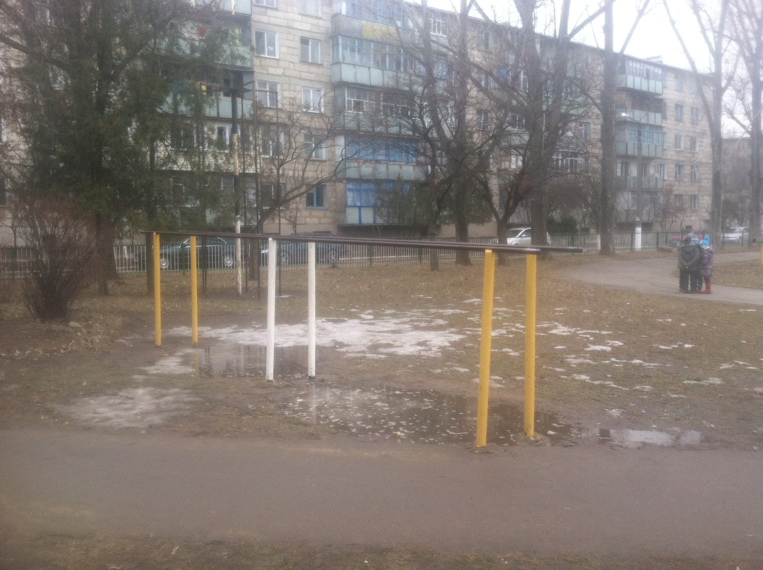 Старая спортивная площадка при школе. Не ахти но заниматься можно и нужно. Турник есть. Брусья узкие на фото есть. Брусья широкие использую змейку. Параллельные подтягивания на горизонтальной лестнице. Шведская лестница тоже есть. Заасфальтированная дорожка беговая 200м. Старое, но все есть главное желание.