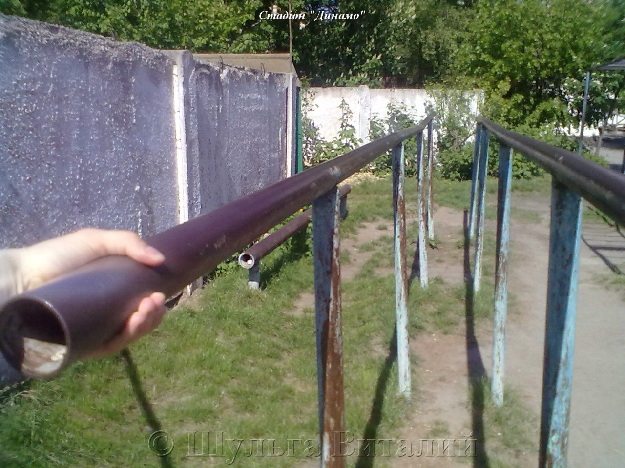 На поле можна походить на руках, густая трава, ровная земля, ЗАШЕБИСЬ! Снаряди все отличные, турник гимнастический, только брусья кривоватые