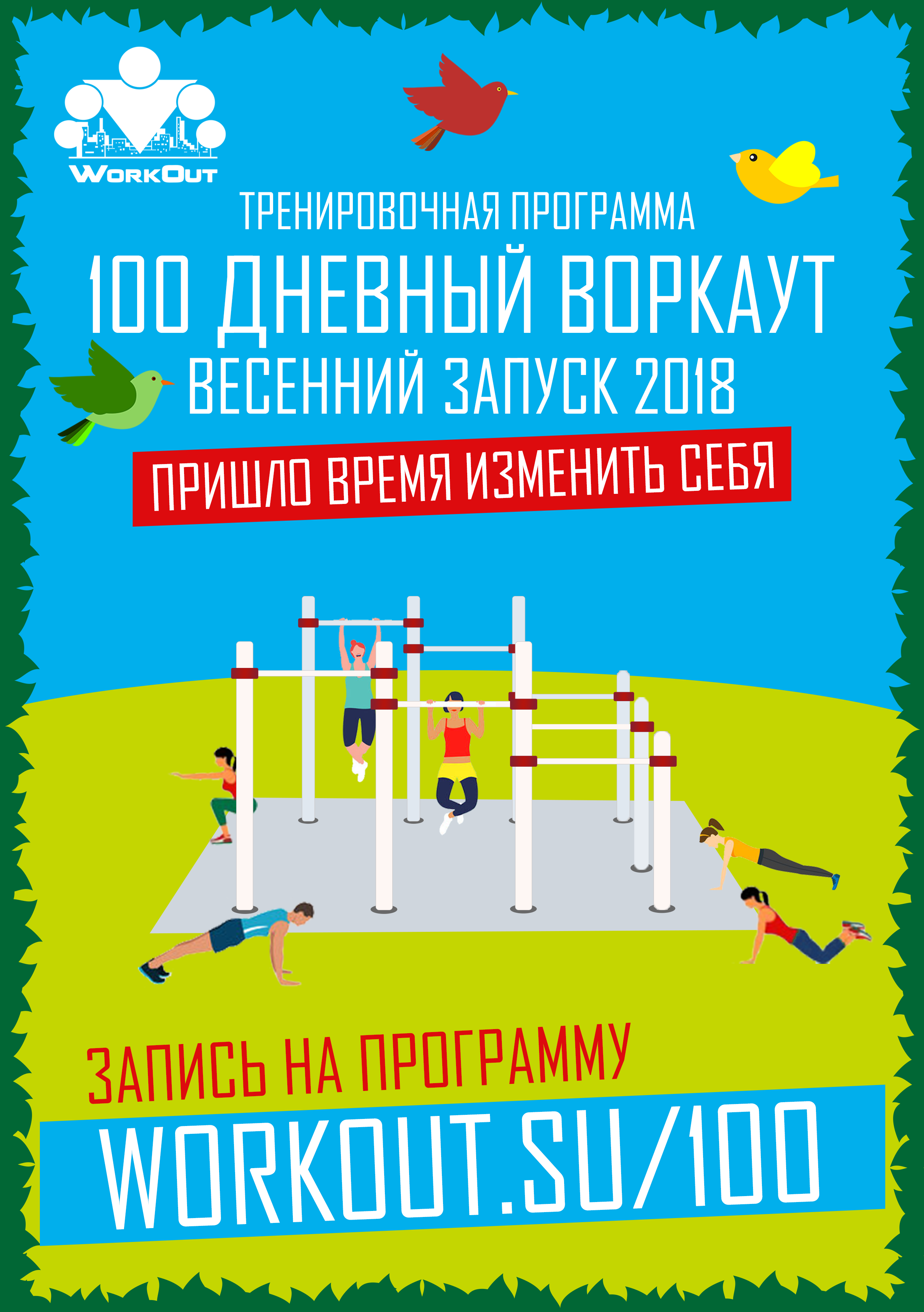 Приглашаем всех желающих на сбор участников бесплатной образовательной-тренировочной программы "<url="100.workout.su">100-дневный воркаут</url>" (присоединиться можно любому желающему, в любое время, вне зависимости от пола и независимо от уровня подготовки :wink: